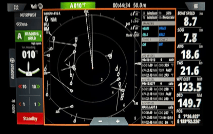 The sail to the Kai Islands went smoothly with 10–20 knots of wind on the beam. The biggest challenge was the many fishing boats after the Torres Strait. The fishermen set longlines up to 10 nautical miles in length, marked with AIS buoys. Below is an image from the chart plotter showing two longlines with a fishing boat at the front.