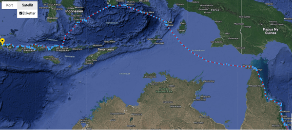 Here you can see the route of about 3,000 nautical miles, with the longest leg from Thursday Island to the Kai Islands in Indonesia – a stretch of 710 nautical miles.